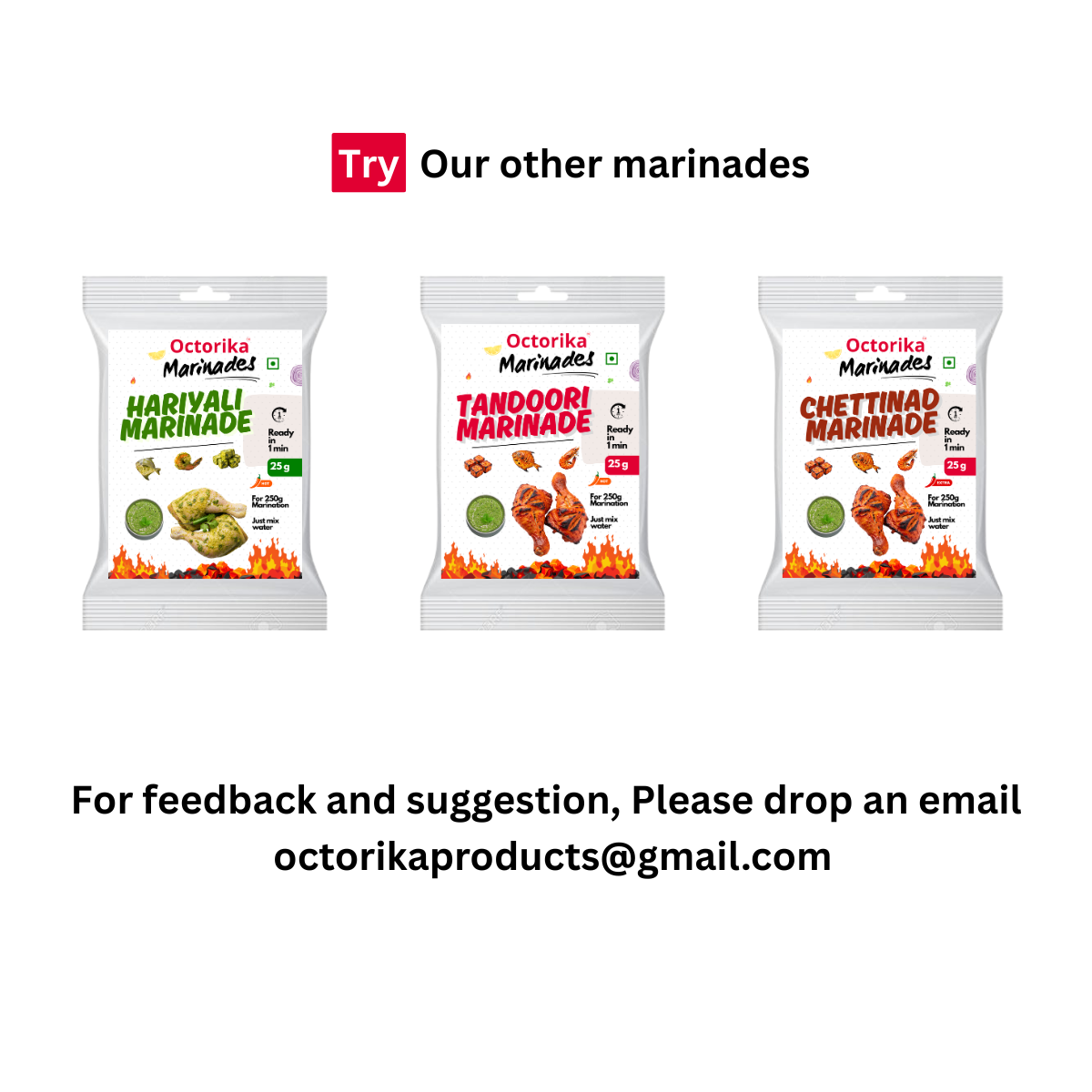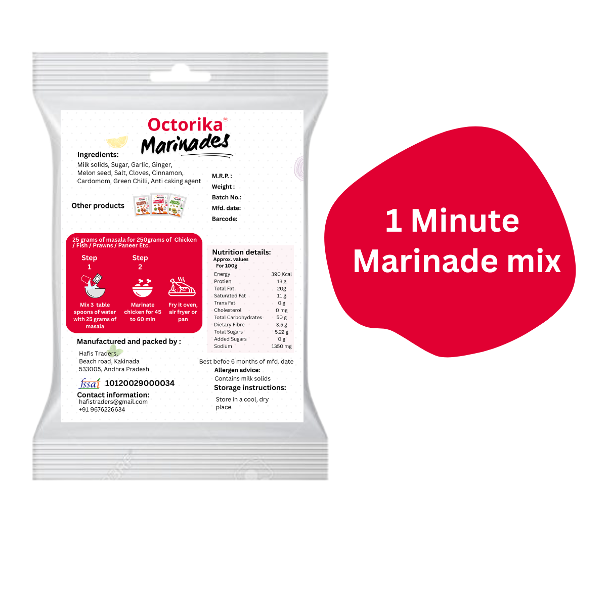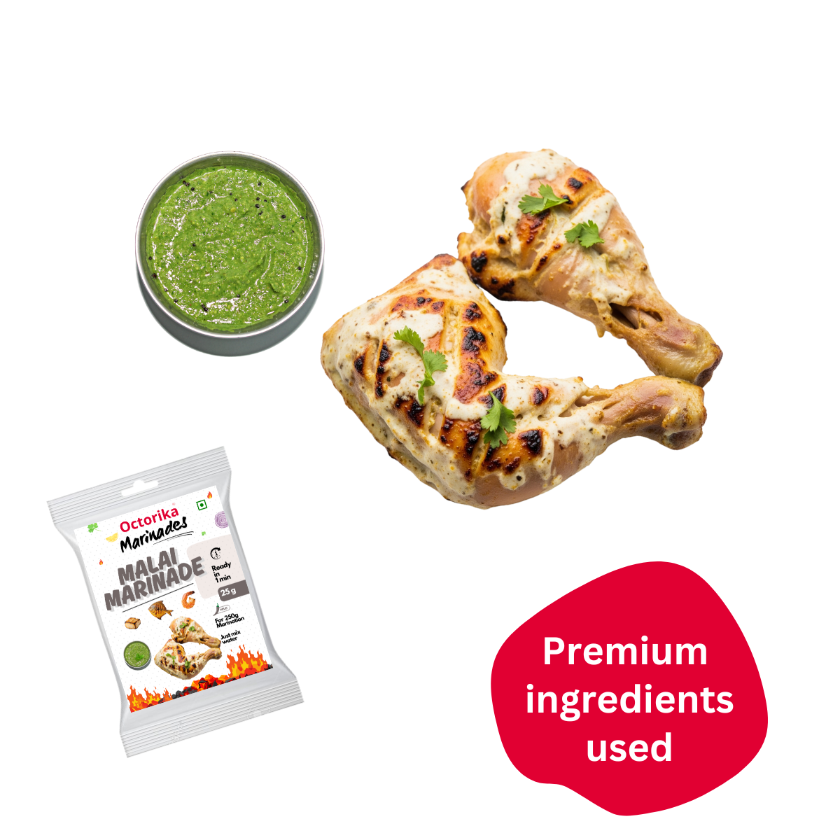 Enjoy the rich, velvety taste of restaurant-style malai tikka at home with Octorika’s Malai Marinade Mix. Made with a delicate blend of dairy solids, mild spices, and herbs, this marinade brings out a creamy, aromatic flavor that's perfect for the whole family.